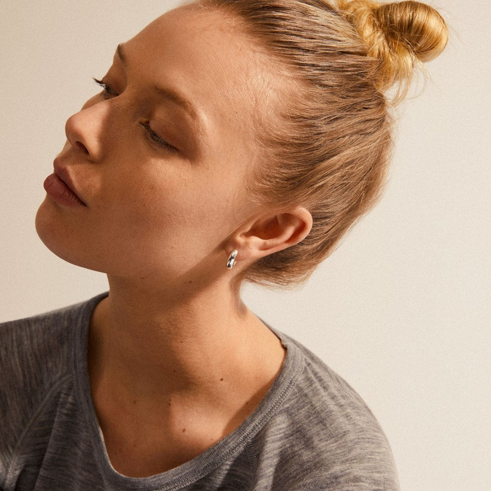 Be your own icon with these silver-plated Aica hoops, made from a minimum of 75% recycled materials. The classic design of the earrings exudes lots of minimalist coolness, whilst the chunky silhouette adds weight and authenticity to your look. Let the earrings be your everyday statement piece and match with more chunky pieces for a complete retro look.
