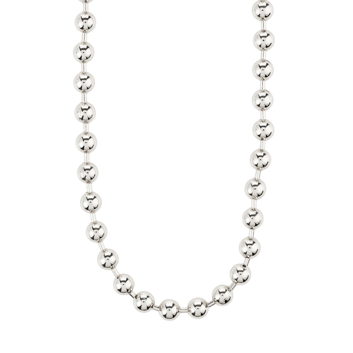 Less ordinary, more legendary! Step up your accessory game with the AIR necklace from Pilgrim – this season’s ultimate statement piece. Crafted in a silver-plated finish, its bold, glossy orb design adds that extra pop to every spring ‘fit. Oversized sculptural spheres blend Nordic minimalism with an unmistakable urban edge, making it perfect for mixing and matching with all your everyday favourites. With a length of up to 50 cm and a chunky carabiner clasp, it’s built for sleek, genderless styling however you want to wear it. Made from 99% recycled materials – because style and conscience are always better together.
