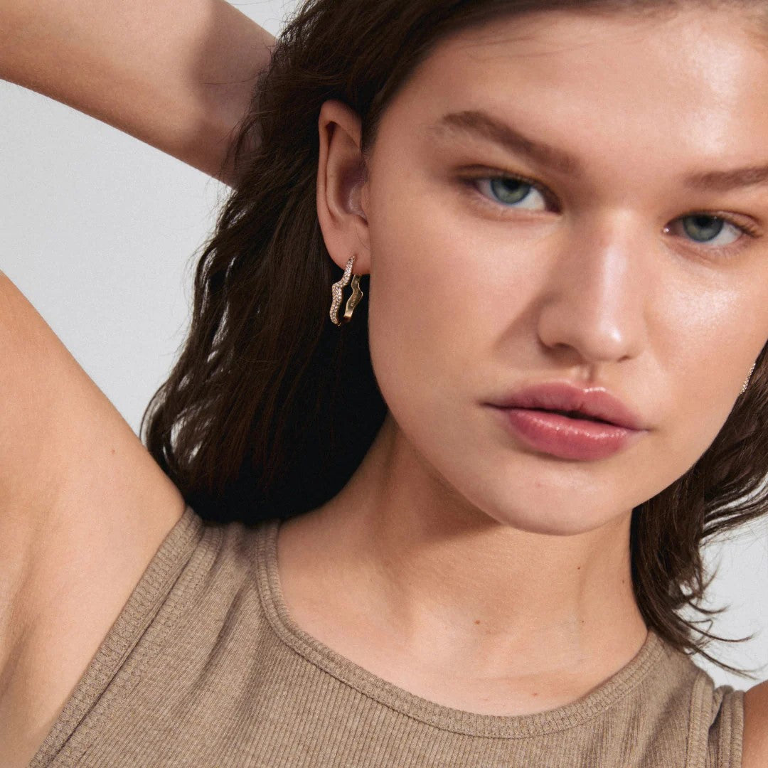 Connect with kindness, impact with love, and wear the CONNECT crystal earrings from Pilgrim as a symbol of just that. The gold-plated oval hoops come in a wavy organic design, studded with shiny Preciosa crystals that add plenty of shine to your styles. With a stylish design and an easy-to-use click clasp, these hoops are both beautiful and practical, and the perfect choice when you want to add a touch of love and light to your day. The earrings are made from 98% recycled material with care for the environment.