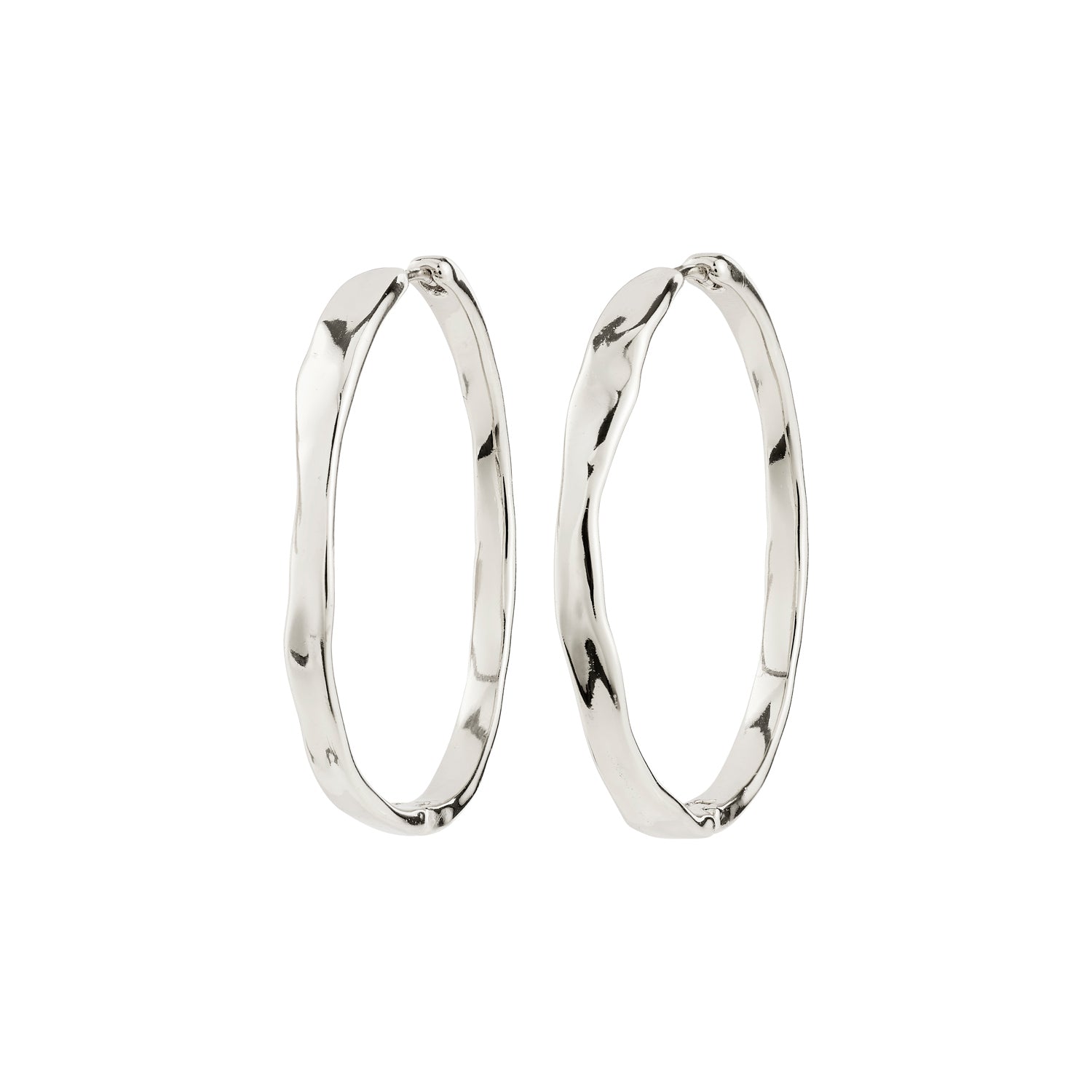 Waterproof Collection - Glow in motion! Silver-plated EMBER hoops from Pilgrim—your new go-to for effortless day-to-night glam. These sleek hoops feature a subtle wavy design that catches the light and brings a clean, laid-back energy to any look. Style them with everything from a sharp bun and oversized shirt to strappy dresses and sunnies tucked in your hair—they’re that versatile. The easy snap locks are made for busy days on the move, so you’ve just met your new everyday faves. Crafted from 99% recycled materials—fashion with a conscience.