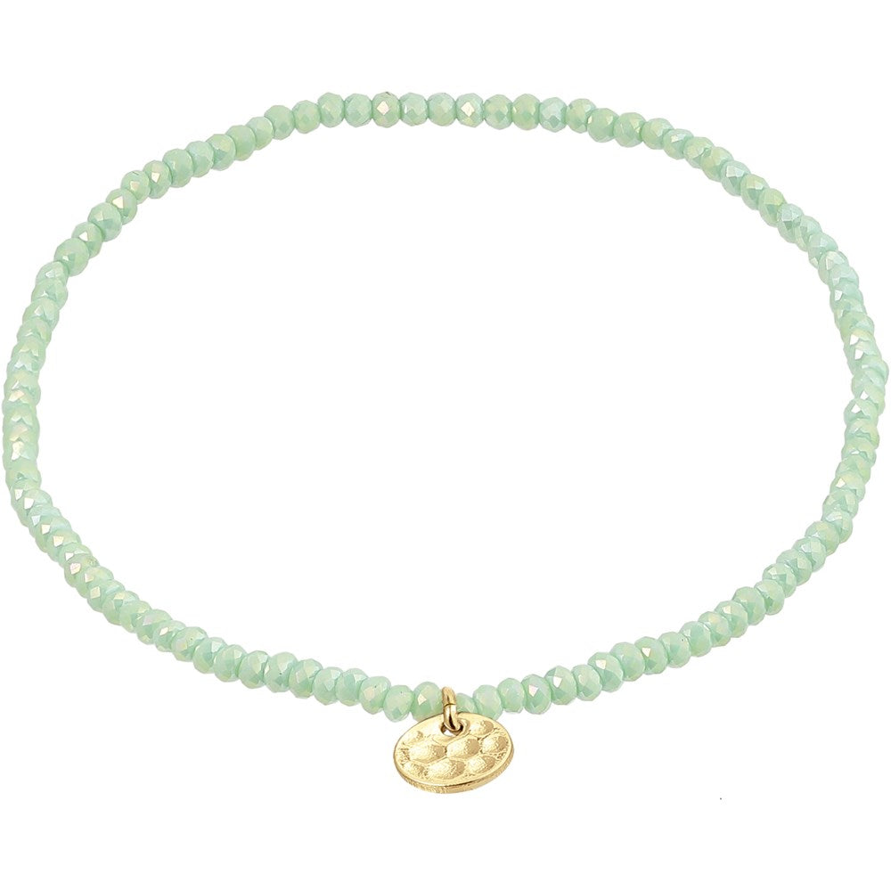 Gorgeous and glittering bead bracelet crafted in small, faceted glass beads in stunning shades of aqua green. With discreet gold-plated Pilgrim logo. Perfect to pair with similar style bracelets in other shades for a unique, personal look. The bracelet is strung with durable Lycra elastic and fits most wrists. It measures 17 cm.