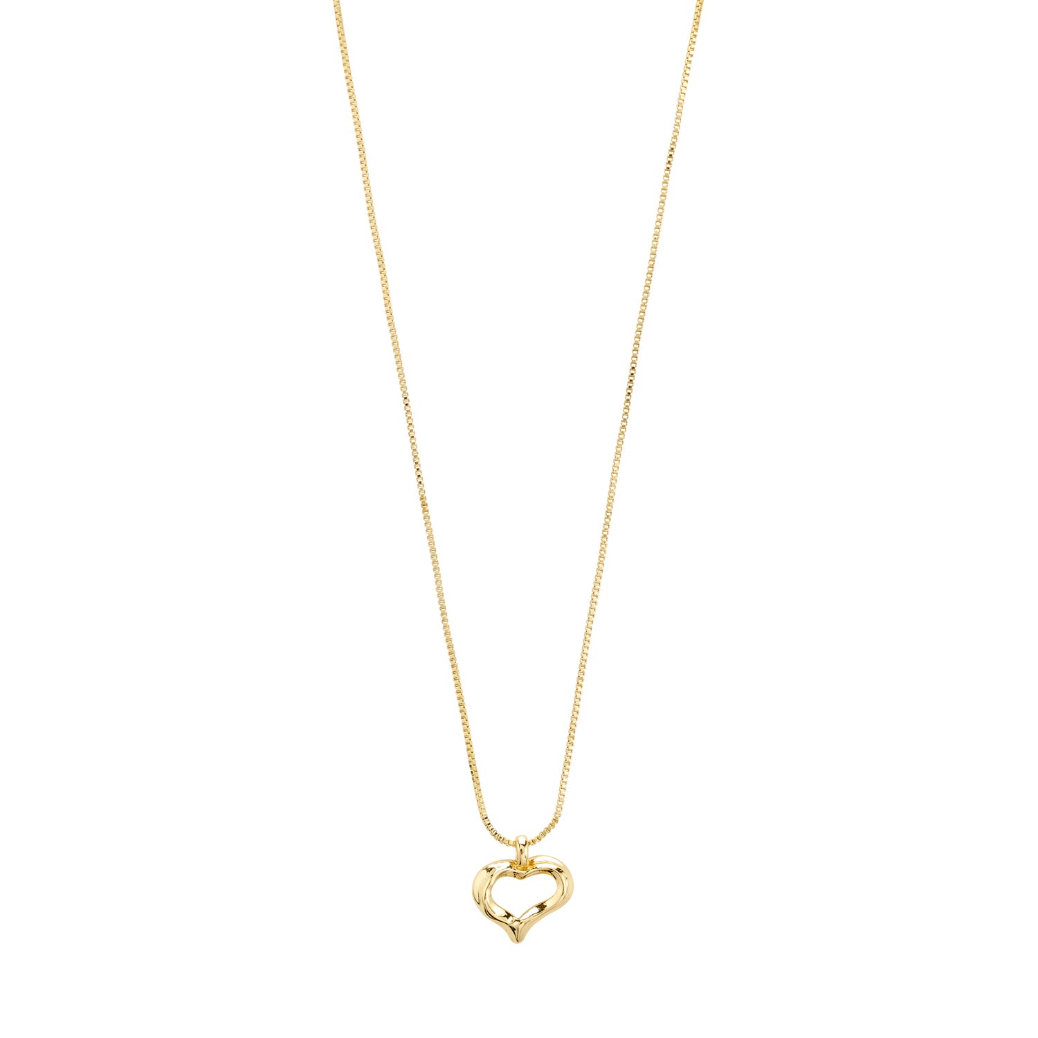 Heart first, always! Gold-plated necklace from Pilgrim’s IRIS collection, here to prove that less really is more. With a delicate heart-shaped pendant hanging from a sleek box chain, this piece nails that perfect blend of sweet symbolism and understated cool—ideal for giving your everyday basics or those dressier moments your own personal twist. Wear it solo for an effortless minimalist vibe or layer up with other chains to channel major love, light and stacking energy. The necklace is 40 cm plus a 12 cm extension chain for the perfect fit, crafted from 99% recycled materials—so you can wear your heart on your sleeve and stay mindful of the planet too.