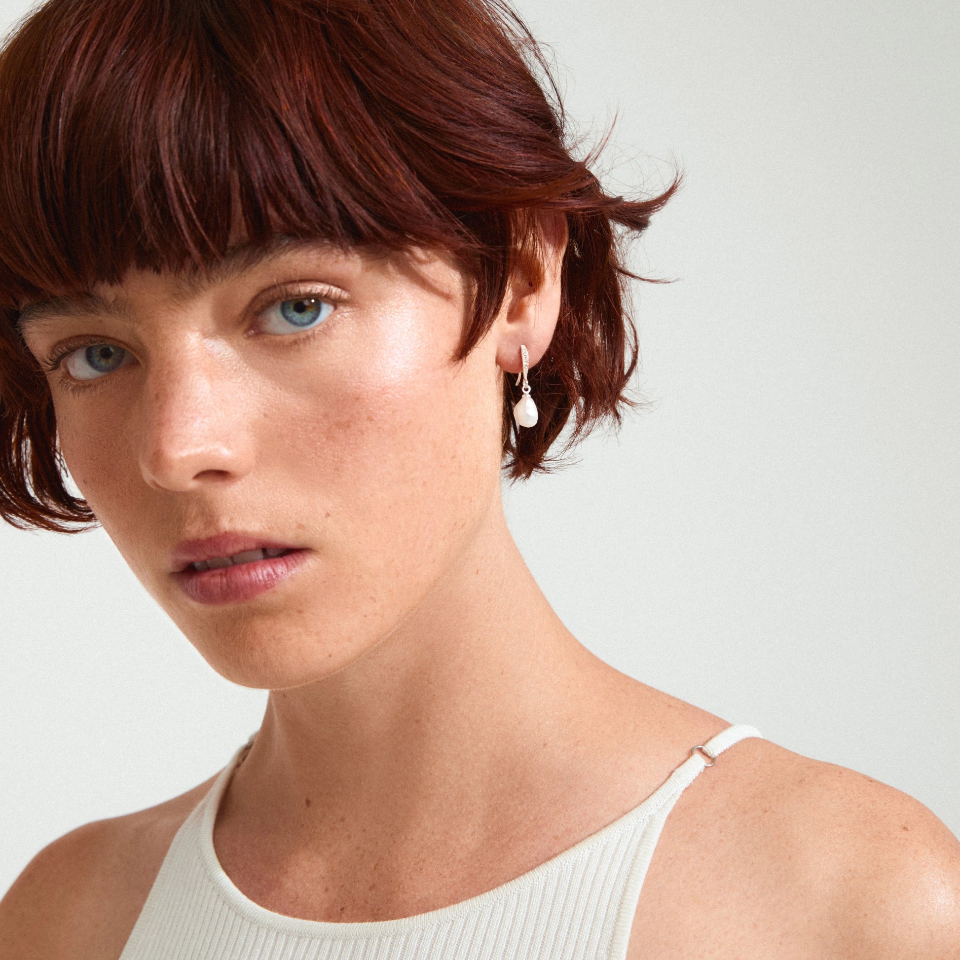 Jasmin Pearl Earrings - Silver Plated - White
