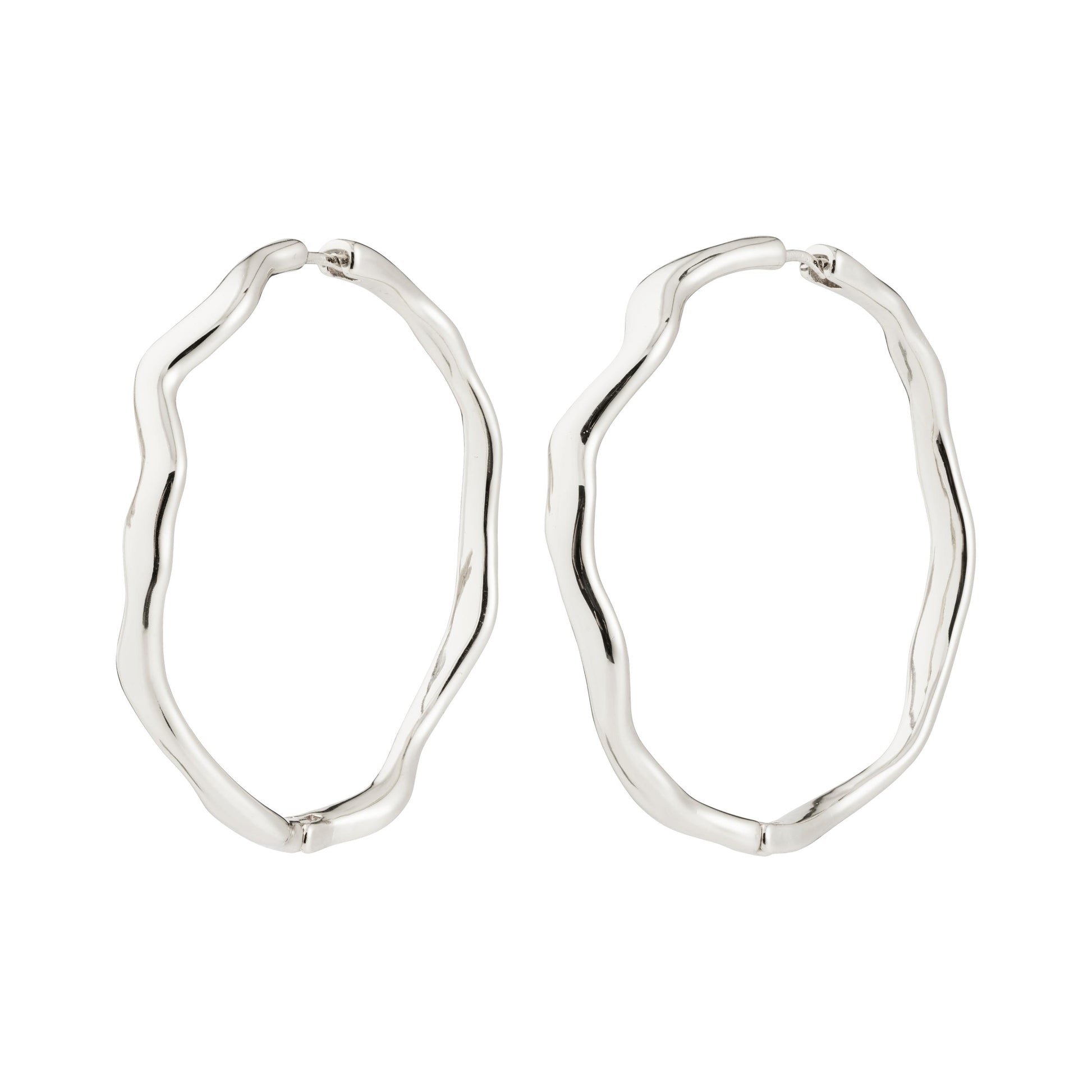 Go with the flow! The LARKIN earrings from Pilgrim offer a wavy, fluid silhouette and a fresh take on classic hoops. The silver-plated large creoles boast a minimalist yet impactful design that beautifully catches the light, creating a playful and stylish look. The easy-to-use snap lock ensures a comfortable fit — it's your go-to piece for both everyday looks and special occasions. Pair them with a flowy blouse and loose waves for an elegant, free-spirited vibe, or let them shine alone as a quiet luxury statement. Made from 99% recycled materials — fashion with care!
