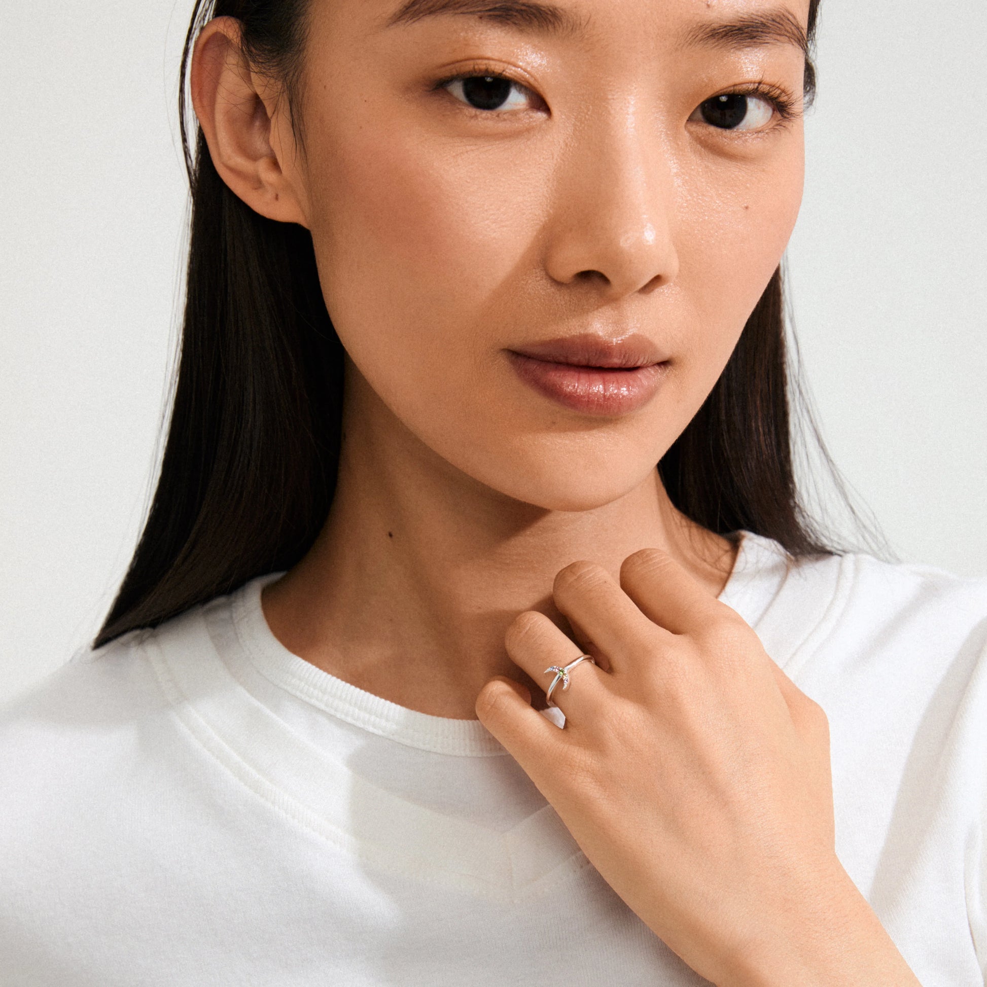 Shine like the moon! A silver-plated ring with a sparkling crescent moon that adds a hint of mystery to your look. The tiny crystals on the crescent moon beautifully reflect light, capturing the nocturnal magic. Ideal for wearing alone to symbolise new beginnings and inner strength, or paired with other rings for a stacked look that glistens. Made from 98% recycled material – a conscientious choice made with love for our earth.
