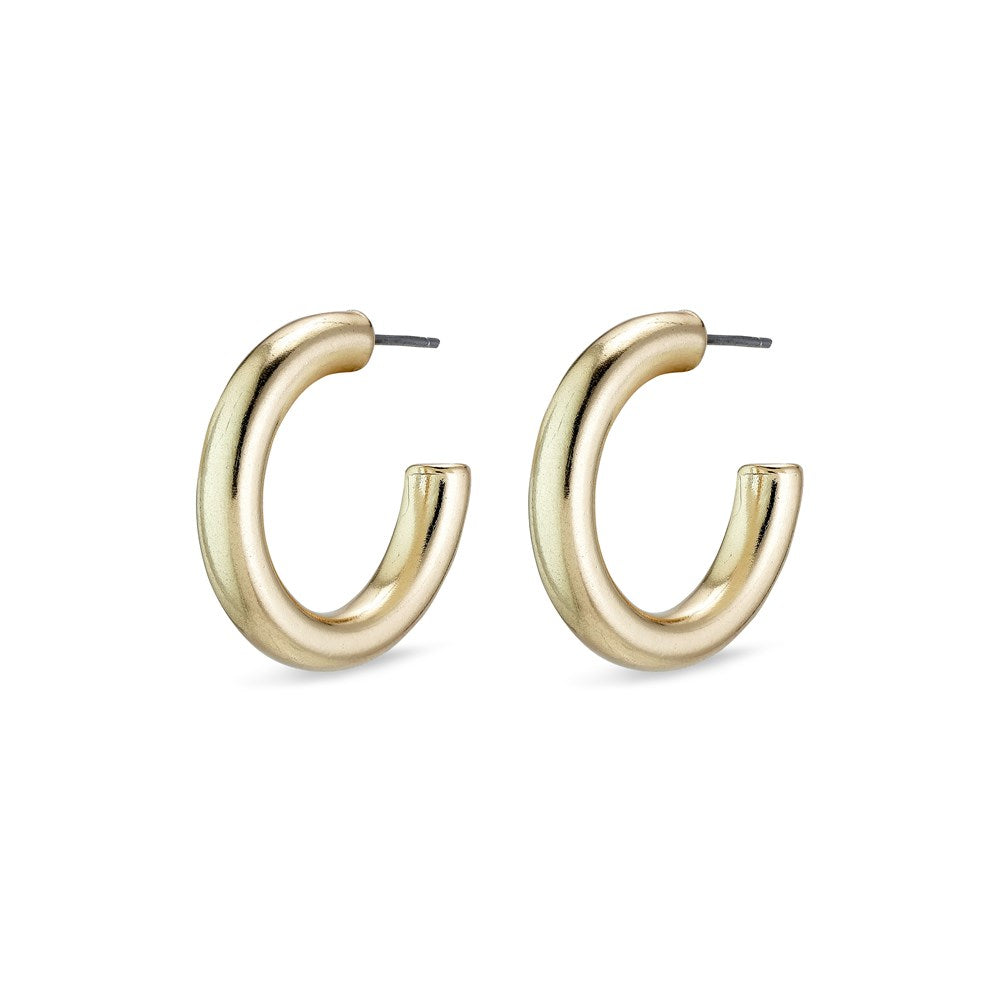 Elegant, classic hoops with chunky polished gold-plated rings. These hoops are available in three sizes so you can find the exact size to match your personal look. You might want to have these smaller earrings as well as the oversized statement earrings, so you can vary your look according to your mood.