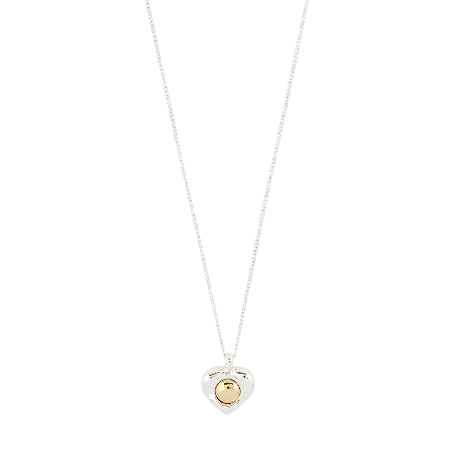 Heart full of shine! The silver-plated NOVA necklace from Pilgrim is a heartfelt key piece, featuring a gleaming heart pendant with a gold-plated centre for that extra touch of luxe. It’s all about contrasts – softness and strength, coolness and warmth – brought together in one standout design. This summer’s go-to trend is mixing metals, and the NOVA chain nails that vibe with effortless style. Pair it with a flowy dress for dreamy energy or layer it up with other chains for an urban, stacked look. The necklace measures 38 cm plus a 9 cm extension chain and is crafted from 99% recycled materials – fashion-forward style that cares for the planet.