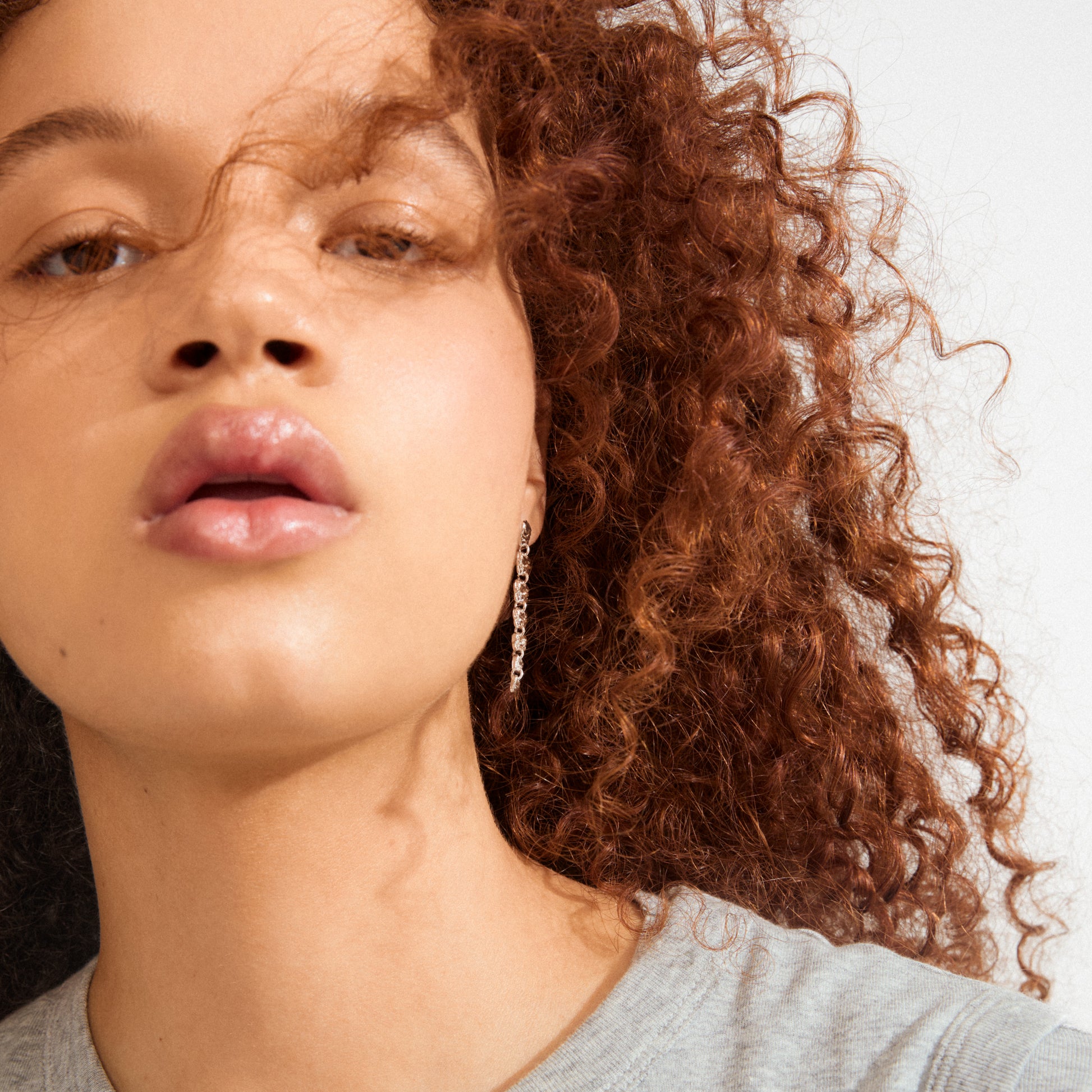 SENSE the movement, feel the energy! The silver-plated SENSE earrings from Pilgrim blend quiet luxury with effortless coolness. The small square coins are linked in a movable chain that follows your movements and reflects light for a dynamic and playful expression. A detail-oriented design that adds an exclusive touch to both everyday and party season moments. Style them with a sleek bun and preppy blazer for a classy, edgy contrast. Made from 99% recycled materials – fashion with thoughtfulness.