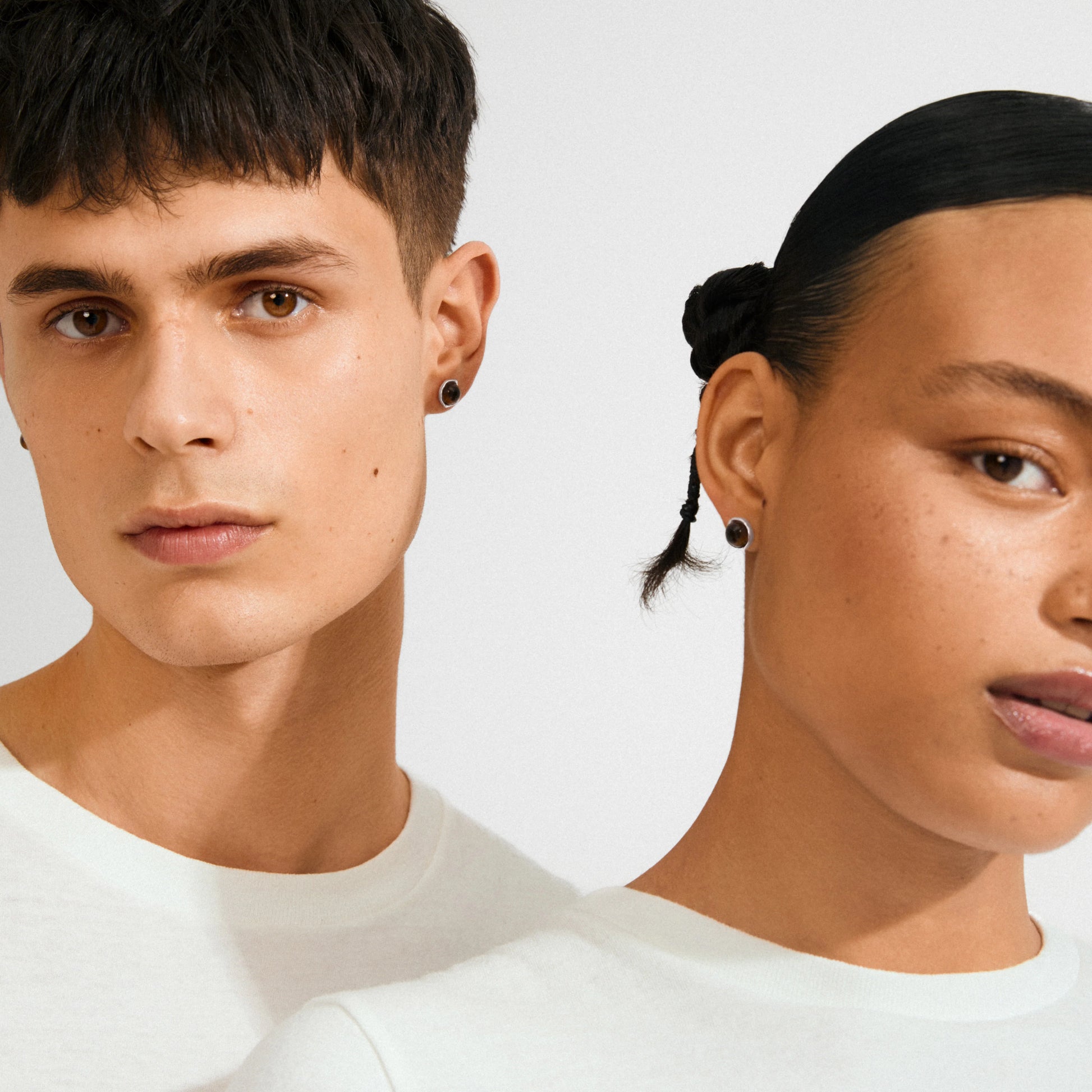 SENSE the strength, embrace the power! The SENSE stud earrings from Pilgrim combine natural elements with a raw, sleek design. The silver-plated setting holds the semi-precious stone Tiger Eye, which is said to symbolise strength, balance, and confidence. The stone has a deep golden-brown colour that shifts beautifully in the light, creating a natural timeless expression. Perfect for both minimalist looks and stacked combinations. Style them with a knitted beret and wide-leg trousers for a relaxed, cool vibe.