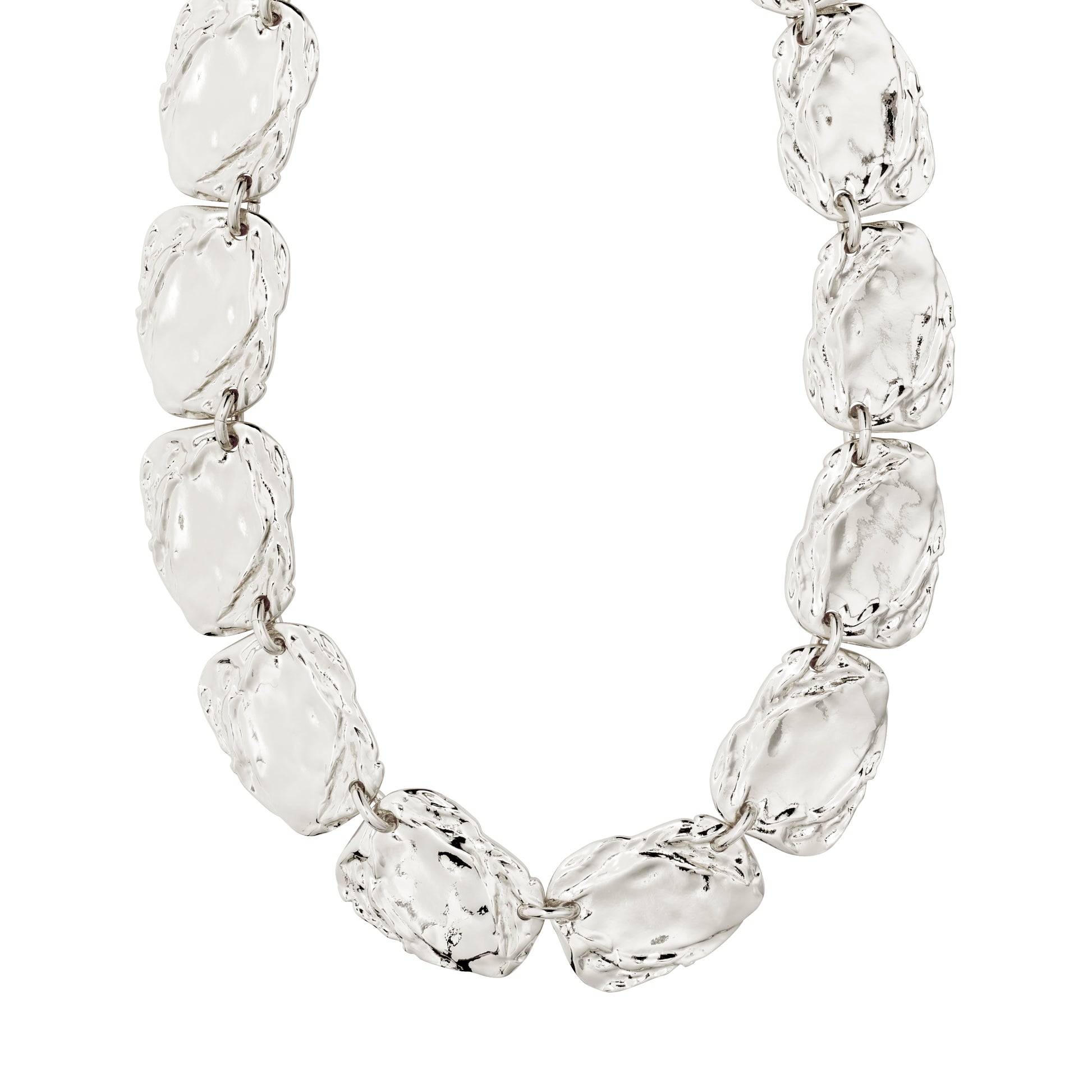 SHIFT your style, own the moment! With the silver-plated SHIFT necklace from Pilgrim, you get this season's statement accessory! The eye-catching design of the chain has a unique rustic character and is made from flat coins that beautifully drape around your neck to give you a confident on-point look. Perfect for both glam nights and casual layering. Style it with a flowy maxi dress and chunky boots for the ultimate balance between bohemian and urban edge. The necklace measures 38 cm + 12 cm extension chain and is made from 99% recycled material – it's fashion with thoughtfulness!