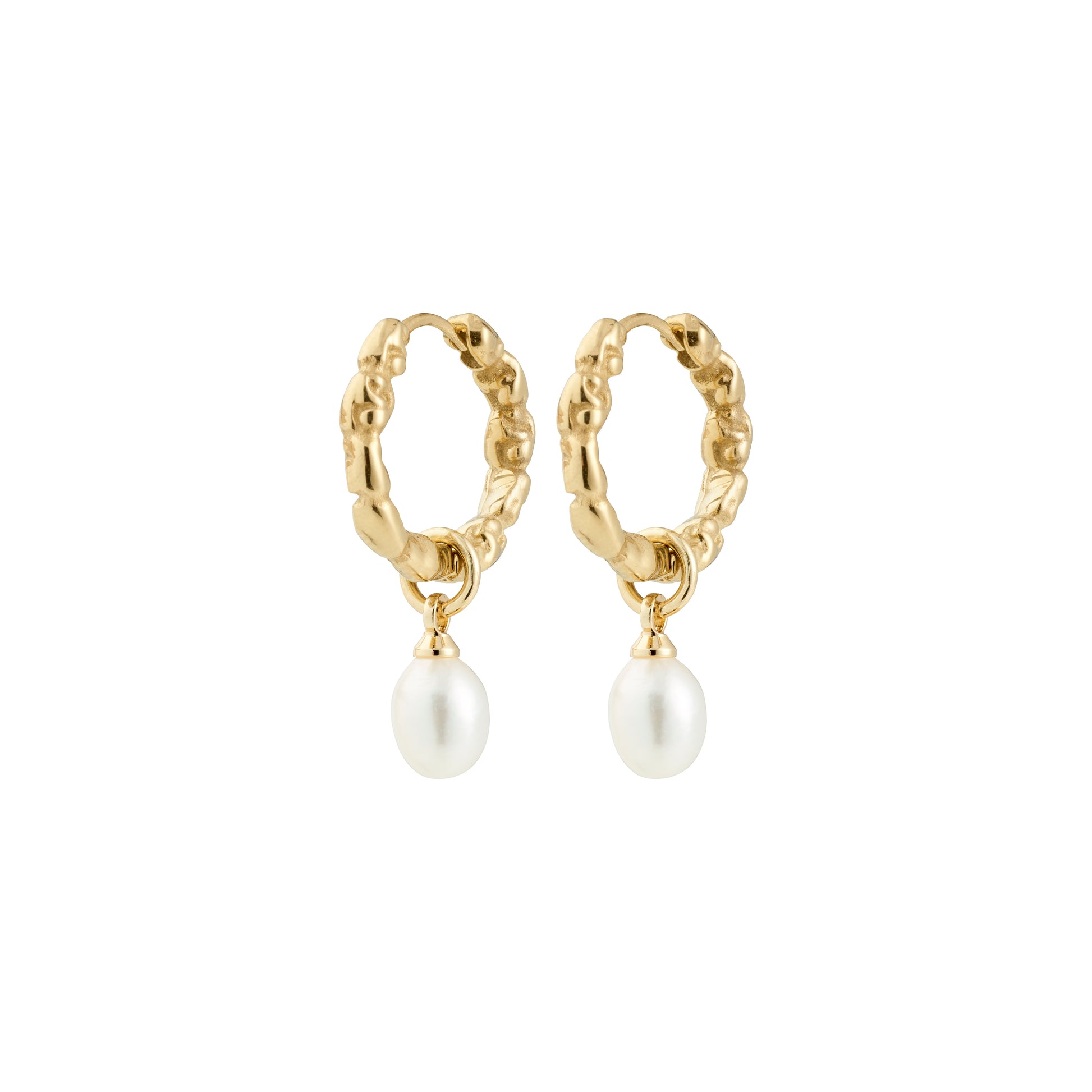 SHIFT your style, mix & match! The gold-plated SHIFT hoops from Pilgrim are a must-have in any jewellery collection. Rustic hoops with a shiny finish and removable real freshwater pearl pendants allow you to change your look depending on your outfit and occasion. Wear them without the pendants for a minimalist touch, or let the pearls add a dreamy boho feel. Style the earrings with a chunky knit, loose waves and wide-leg jeans for an effortless, everyday glow. Made from 78% recycled materials – because thoughtfulness never goes out of style.