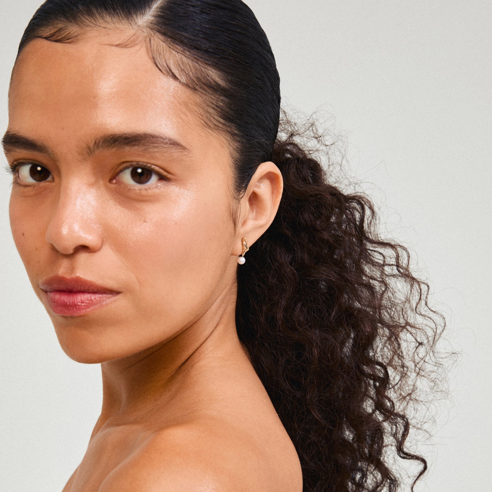 Chase the starlight with Pilgrim's STARLIGHT pearl earrings. A set of gold-plated stud earrings with a beautiful organic shape and pendants of genuine freshwater pearls. Inspired by the sea, the design combines a wavy motif with a white pearl - an ideal match for an everyday classic that enhances both casual and party outfits. Pair these essential pieces with a loose, silky blouse for an effortlessly chic appeal and take pride in knowing they are crafted from 79% recycled materials.